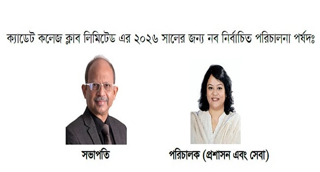 ক্যাডেট কলেজ ক্লাব লিমিটেডের ২০২৬ সালের জন্য নতুন পরিচালনা পর্ষদের নির্বাচন অনুষ্ঠিত হয়েছে। এতে সভাপতি হিসেবে স্থপতি মোঃ ইসতিয়াক জহির তিতাস, পরিচালক (প্রশাসন ও সেবা) হিসেবে তাহমিনা রহমান অণু এবং পরিচালক (অর্থ ও হিসাব) হিসেবে কাজী মাসুম হোসেন নির্বাচিত হয়েছেন।