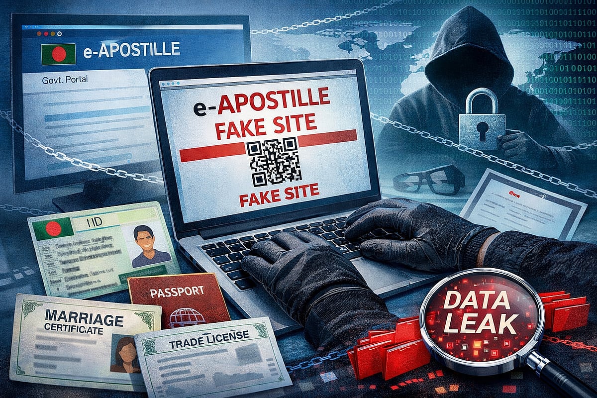 বিদেশে পড়াশোনা, চাকরি বা ব্যবসায়িক কাজে প্রয়োজনীয় নথি সত্যায়নের জন্য সরকারি ই-অ্যাপোস্টিল সেবায় আবেদন করতে গিয়ে অন্তত ১ হাজার ১০০ জন নাগরিকের ব্যক্তিগত নথি একটি ওয়েবসাইটে ফাঁস হয়ে গেছে। এর মধ্যে রয়েছে জাতীয় পরিচয়পত্র (এনআইডি), পাসপোর্ট, বিয়ের সনদ, শিক্ষা সনদ, ট্রেড লাইসেন্স, ব্যবসায়িক চুক্তিপত্রসহ ব্যক্তিগত নানা তথ্য।
