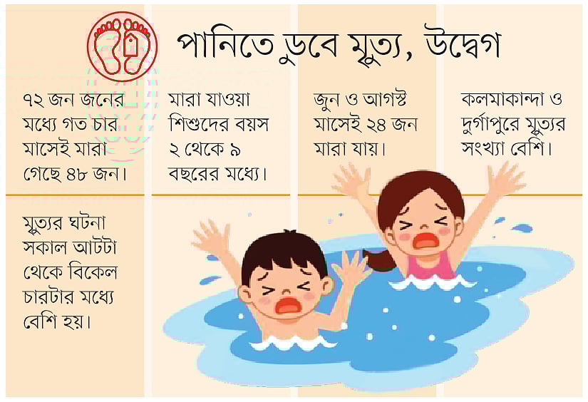 তথ্য বিশ্লেষণ করে আরও জানা যায়, যেসব শিশুর পানিতে ডুবে মৃত্যু হয়েছে, তাদের বয়স ২ থেকে ৯ বছরের মধ্যে। বেশির ভাগ শিশুই বাড়ির সামনে, পেছনে বা পাশের পুকুর, ডোবায় (ছোট জলাশয়) ডুবে মারা গেছে। এসব মৃত্যুর ঘটনা সকাল আটটা থেকে বিকেল চারটার মধ্যে বেশি হয়। সকাল থেকে দুপুর পর্যন্ত ঘরের লোকজন কাজে ব্যস্ত থাকেন। তখন তাঁরা শিশুরা কোথায় খেলছে, অনেক সময় খেয়াল করেন না। আর দুপুর থেকে বিকেল পর্যন্ত সময়ে যখন পরিবারের সদস্যরা বিশ্রাম করেন, তখন শিশুরা খেলতে বের হয় আর দুর্ঘটনার শিকার হয়। মারা যাওয়া শিশুদের মধ্যে দরিদ্র পরিবারের শিশু বেশি।