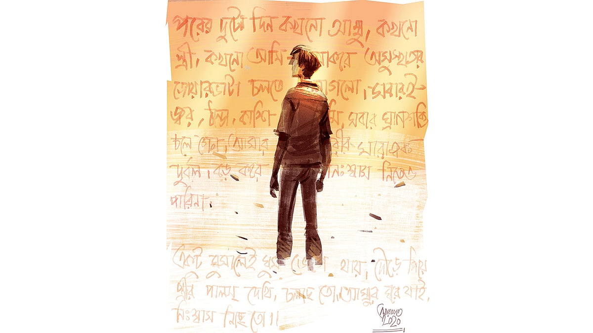 বাসায় ফিরে দেখি আম্মু বিছানায়। জ্বর বেড়েছে, শ্বাসেও কষ্ট। আমার ঘরে গিয়ে দেখি, স্ত্রীও অসুস্থ। ওকে জানালাম, চিকিৎসকের ধারণা, আমার করোনা পজিটিভ হতে পারে। আমাদের আলাদা থাকা দরকার। ও বলল, যা হবে একসঙ্গে মোকাবিলা করব। প্রবল দুঃখেও চোখে পানি চলে এল।