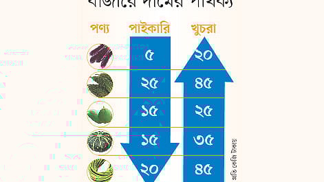 পাইকারি আর খুচরা বাজারের দামের এমন পার্থক্য নিয়ে খুচরা বিক্রেতারা বলছেন, কাঁচামাল দুই দিনের বেশি রাখলে নষ্ট হয়। লকডাউনের কারণে বাজারে ক্রেতা কম। আল আমিন নামে এক বিক্রেতা বলেন, সবজির দাম খুব একটা বাড়েনি। পাইকারি বাজারের দামের সঙ্গে খুচরা বাজারের হিসাব মেলালে হবে না। পরিবহন খরচ, হাট খাজনা, কর্মচারীর বেতন সবকিছু হিসাব করলে তাঁদেরও খুব বেশি লাভ থাকে না।