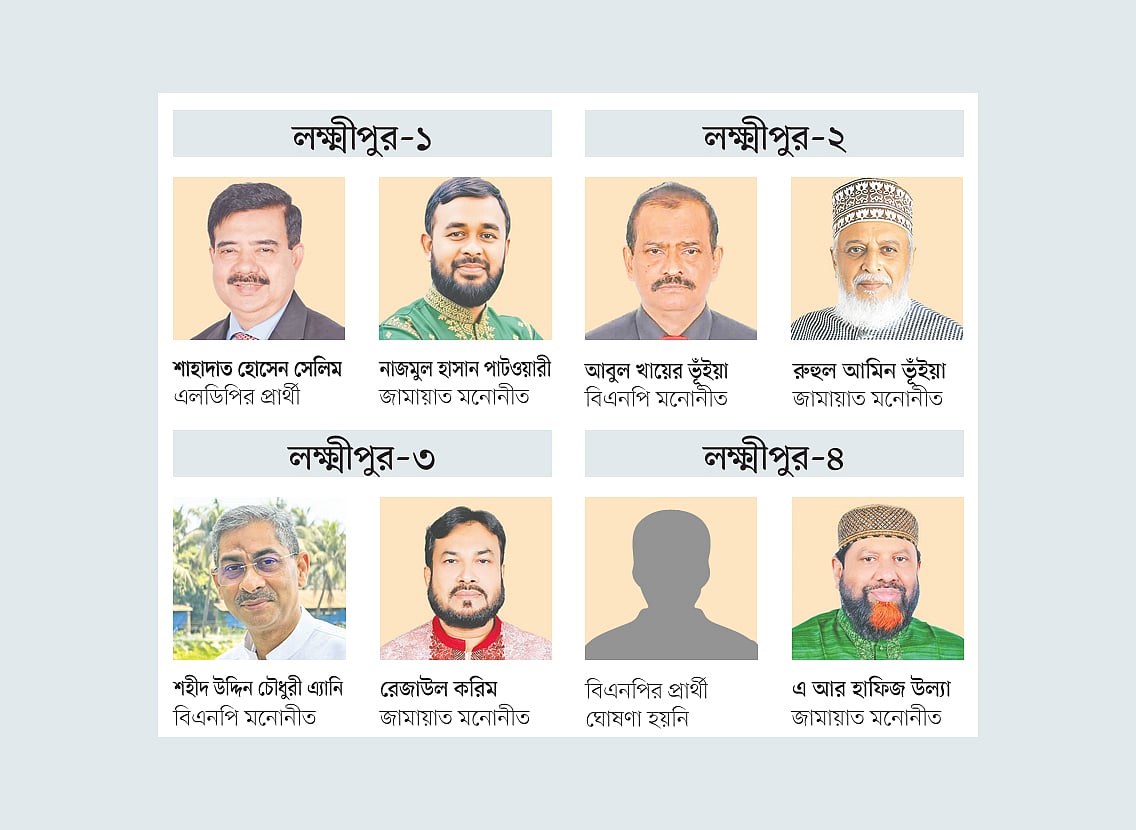 লক্ষ্মীপুর বিএনপি–প্রভাবিত এলাকা হিসেবে পরিচিত। দলটি ২০০১ ও ২০০৮ সালের নির্বাচনে জেলার চারটি আসনেই জিতেছিল। ২০১৪ সালে বিএনপিসহ বিরোধী দলগুলো নির্বাচন বর্জন করে। একতরফা ওই নির্বাচনে সব আসন আওয়ামী লীগের দখলে চলে যায়। এবার সেটা ফিরে পেতে তৎপর বিএনপি।