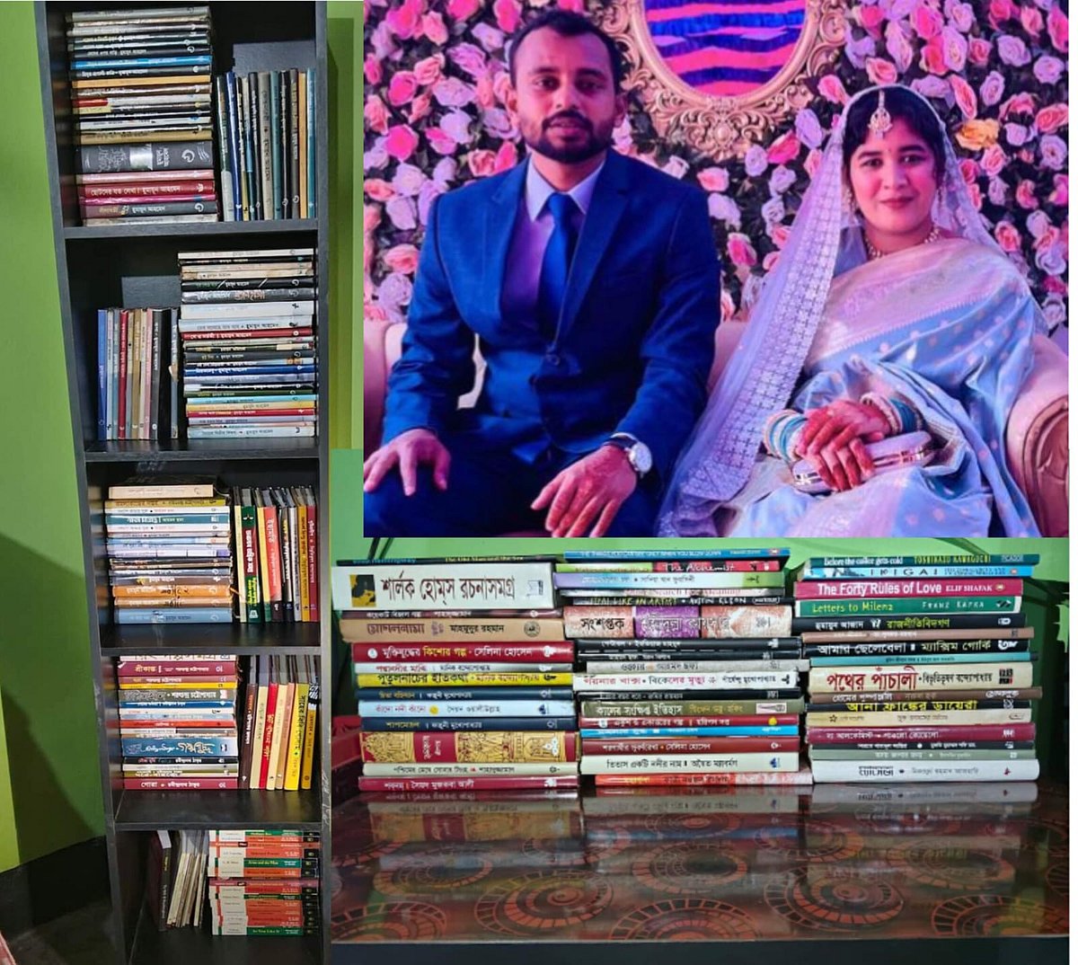 গত সোমবার বিকেলে মেহেরুন নেছা উপজেলার চরফলকন গ্রামে শ্বশুরবাড়িতে বইগুলো নিয়ে আসেন। আর ছিল বাহারি পদের পিঠা। এ নিয়ে গতকাল মঙ্গলবার নববধূর স্বামী এমরান হোসেন (নিখিল) তাঁর স্ত্রীর আনা বইয়ের ছবি সামাজিক যোগাযোগমাধ্যম ফেসবুকে পোস্ট করেন। এভাবে খবরটি ছড়িয়ে পড়ে।