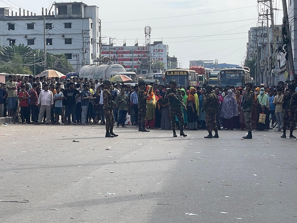 গাজীপুরের শিল্প পুলিশের অতিরিক্ত পুলিশ সুপার মোশারফ হোসেন বলেন, শ্রমিকেরা তৃতীয় দিনের মতো আজ সোমবার সকালে বিক্ষোভ ও মহাসড়ক অবরোধ করে রাখেন। খবর পেয়ে শিল্প মন্ত্রণালয়ের সচিব, জেলা প্রশাসনের কর্মকর্তা ও সেনাবাহিনীর সদস্যরা বেলা একটার দিকে ঘটনাস্থলে যান। পরে শ্রমিকদের সঙ্গে আলোচনা করে আগামী রোববার বেতন–ভাতা দেওয়ার আশ্বাস দেওয়া হয়। পরে শ্রমিকেরা নিজেদের মধ্যে কথা বলে বেলা আড়াইটার দিকে অবরোধ প্রত্যাহার করেন। সার্বিক পরিস্থিতি বিবেচনায় আশপাশের ১২টি কারখানায় ছুটি ঘোষণা করা হয়েছে।