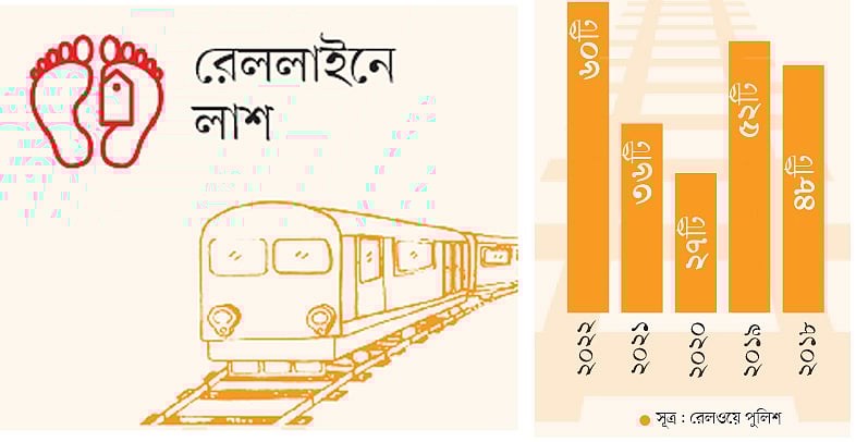 গাজীপুর জেলায় ২০২২ সালে রেললাইন থেকে অন্তত ৬০ জনের লাশ উদ্ধার করেছে রেলওয়ে পুলিশ। আগের দুই বছর থেকে এ সংখ্যা প্রায় দ্বিগুণ। রেলওয়ে পুলিশ বলছে, তাদের মধ্যে কেউ কেউ অসতর্কতার কারণে ট্রেনে কাটা পড়ে মারা গেছেন, কেউবা আত্মহত্যা করেছেন। আবার অরক্ষিত রেলক্রসিয়ে দুর্ঘটনায় মৃত্যুর ঘটনা রয়েছে।