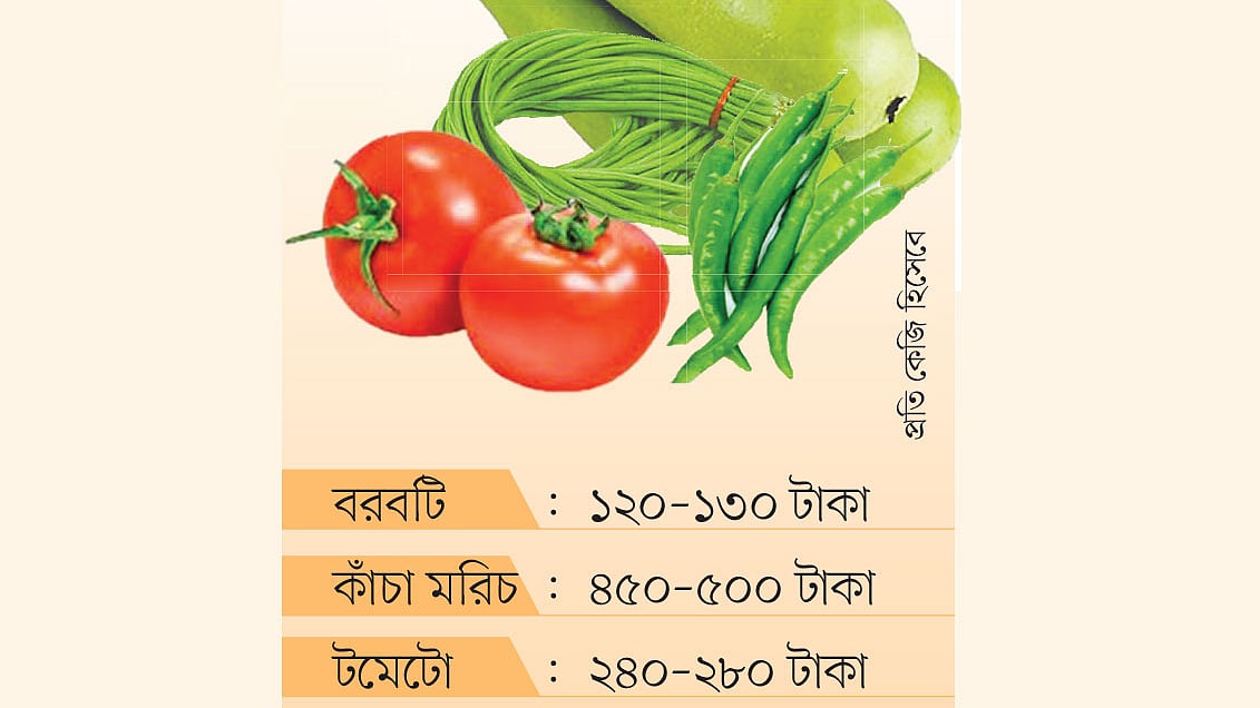 গতকাল শুক্রবার দুপুর সাড়ে ১২টার দিকে চারু মিয়া বলেন, ‘কাস্টমাররে কিতা কইতাম, আমি নিজেই বিশ্বাস করতাম পারতাছি না সবজির এত দাম কেমনে হইতারে। এক কেজি শিমের দাম ৩১০ টাকা, ফুলকপি ২৪০ টাকা, টমেটো ২৬০ টাকা, কাঁচা মরিচ ৪৫০ আর ধনেপাতা ৪৮০ টাকা। ৪০ বছর ধরই সবজি বেচতাছি, এত দাম আমার জীবনেও দেহি নাই। কাস্টমার আইয়া দাম হুনলেই চিল্লাচিল্লি করে। আমরা কিতা করতাম। আমরা তো বেশি দামে কিন্না আনছি।’