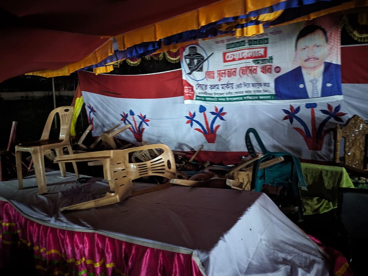 সুলতান হোসেন খানের সমর্থক আহত কে এস জাহিদ বলেন, আনারস প্রতীকের প্রার্থী খান আরিফুর রহমানের সমর্থক জেলা ছাত্রলীগ ও যুবলীগের নেতা-কর্মীরা এই হামলা করেছেন।