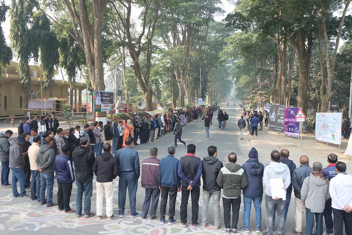 রাজশাহী বিশ্ববিদ্যালয়ে কর্মকর্তাদের ওপর হামলা ও হেনস্তার প্রতিবাদ এবং নিরাপদ কর্মস্থলের দাবিতে মানববন্ধন হয়েছে। আজ বুধবার বেলা ১১টা থেকে দুপুর ১২টা পর্যন্ত বিশ্ববিদ্যালয়ের সিনেট ভবনের সামনে ‘বিশ্ববিদ্যালয় অফিসার সমিতির’ ব্যানারে এ কর্মসূচি পালন করা হয়। একই দাবিতে তাঁরা আগামীকাল বৃহস্পতিবার সকাল ৯টা থেকে দুপুর ১২টা পর্যন্ত কর্মবিরতি পালনের ঘোষণা দিয়েছেন।