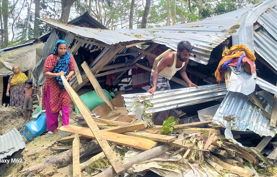 হাবিবুর রহমান বলেন, স্ত্রী ও দুই মেয়ে নিয়ে বন্যা নিয়ন্ত্রণ বাঁধের বাইরে ঘর তুলে বসবাস করছিলেন তিনি। ঝড়ে তাঁর ঘরটি বিধ্বস্ত হয়েছে। তাঁরা বসতঘর ভেঙে যাওয়ার পর ঝোড়ো বাতাস ও প্রবল বৃষ্টি থেকে নিজেদের রক্ষার জন্য পাশের এক আত্মীয়ের বাড়িতে আশ্রয় নিয়েছেন। অন্যের বাড়ি থেকে দেওয়া খাবার খাচ্ছেন তাঁরা। মাথা গোঁজার ঠাঁইটুকু না থাকার পরিবার নিয়ে দিশেহারা তাঁরা।