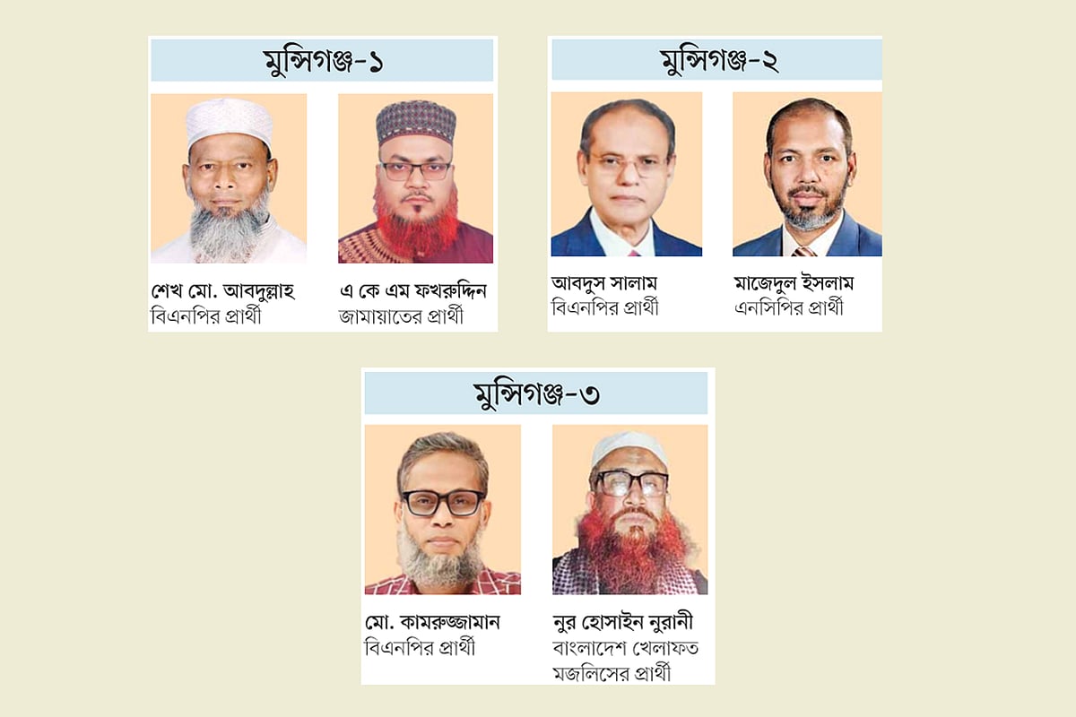 এনসিপির প্রার্থী দলের মুন্সিগঞ্জ জেলা সমন্বয়ক মাজেদুল ইসলাম বলেন, ‘জোট থেকে এ আসনে আমাকে মনোনয়ন দিয়েছে। আমাদের দলের নেতা-কর্মীসহ ইসলামি দলগুলো আমার সঙ্গে রয়েছে। দেশের মানুষ আওয়ামী লীগকে দেখেছে, বিএনপিকেও দেখেছে। এখন তৃতীয় কাউকে দেখতে চায়।’