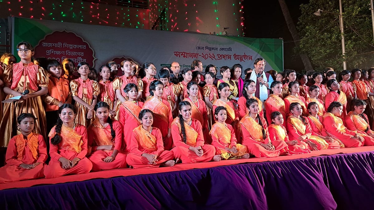 উৎসব শুরু হওয়ার কথা ছিল সন্ধ্যা ছয়টায়। এর আধা ঘণ্টা আগে ভরে যায় রাজশাহী জেলা শিল্পকলা একাডেমি প্রাঙ্গণ। এই প্রথম রাজশাহী জেলা শিল্পকলা একাডেমির শিক্ষার্থীর সংখ্যা হাজার ছাড়িয়েছে। এ উপলক্ষে গত মঙ্গলবার সন্ধ্যায় আয়োজন করা হয়েছিল সহস্র শিক্ষার্থী বরণ উৎসব। এতে অতিথি ছিলেন শিল্পকলা একাডেমির মহাপরিচালক লিয়াকত আলী (লাকী)।