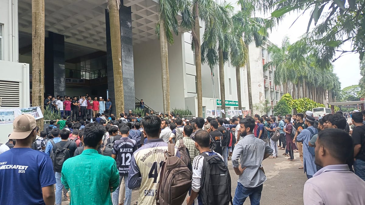 সমকামিতায় জড়িত থাকার অভিযোগ ওঠার পর গাজীপুরের ঢাকা প্রকৌশল ও প্রযুক্তি বিশ্ববিদ্যালয়ের (ডুয়েট) পাঁচ শিক্ষার্থীকে হল থেকে বহিষ্কার করা হয়েছে। এদিকে তাঁদের বিচার ও বিশ্ববিদ্যালয় থেকে স্থায়ীভাবে বহিষ্কারের দাবিতে বৃহস্পতিবার ক্যাম্পাসে বিক্ষোভ করেছেন একদল শিক্ষার্থী।