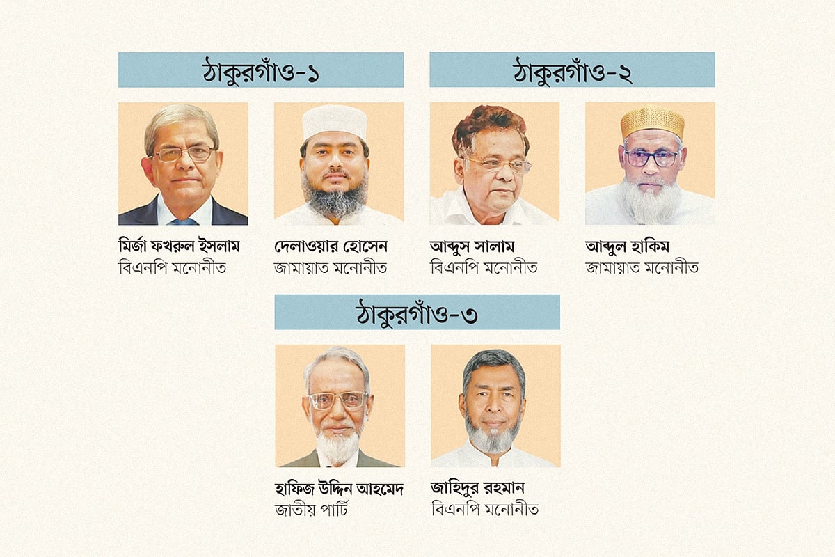 ঠাকুরগাঁওয়ের রাজনীতিতে বরাবর দাপট ছিল আওয়ামী লীগের। মাঠপর্যায়ে সমর্থক থাকলেও বিএনপি এখানে খুব বেশি সুবিধা করতে পারেনি। জামায়াতের রাজনীতি চলেছে গোপনে। ছাত্র-জনতার অভ্যুত্থানের পর আওয়ামী লীগের নেতা-কর্মীরা আত্মগোপনে।