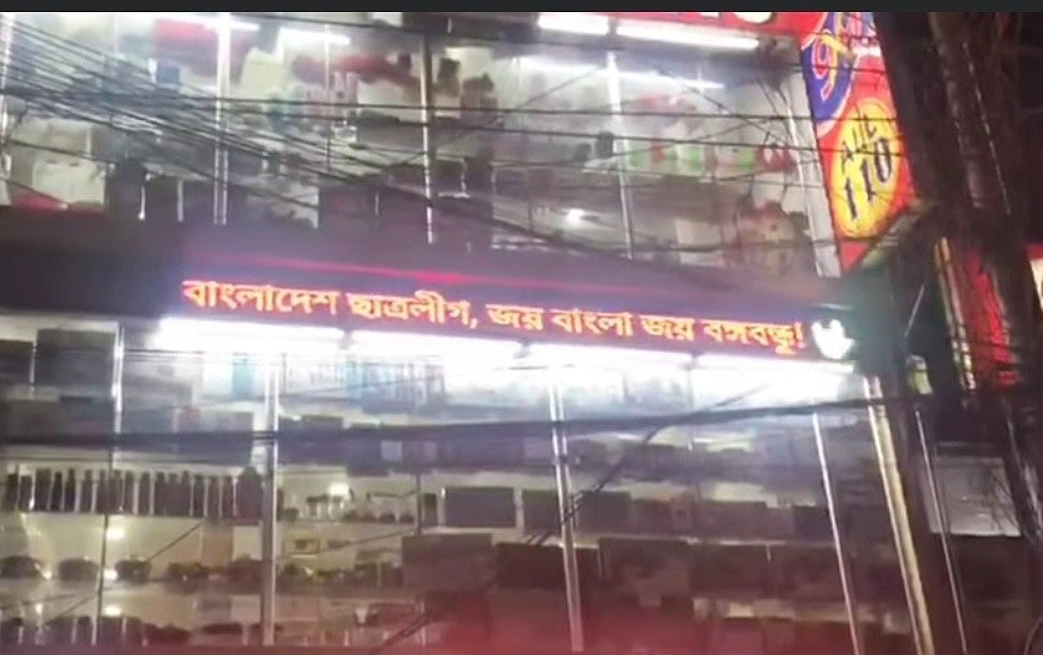 শেরপুরে একটি দোকানের ডিজিটাল বোর্ডে ভেসে উঠল ‘বাংলাদেশ ছাত্রলীগ, জয় বাংলা, জয় বঙ্গবন্ধু’ লেখা। গতকাল বুধবার রাত সাড়ে ৯টার দিকে শেরপুর জেলা শহরের মুন্সিবাজার এলাকার রাজ ক্রোকারিজ অ্যান্ড গিফট শপের ডিজিটাল বোর্ডে এই লেখা ভেসে ওঠে।
