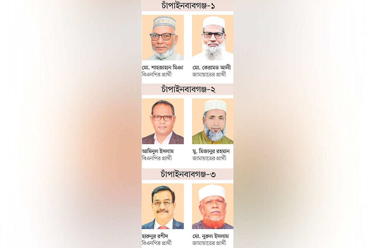 ত্রয়োদশ জাতীয় সংসদ নির্বাচনের আনুষ্ঠানিক প্রচার–প্রচারণা শুরু না হওয়ায় চাঁপাইনবাবগঞ্জের তিনটি আসনে এখনো নির্বাচনী উত্তাপ ছড়ায়নি। তবে মনোনয়নপত্র যাচাই–বাছাই শেষে সাধারণ ভোটার ও দলীয় নেতা–কর্মীরা বলছেন, তিনটি আসনেই বিএনপি ও জামায়াতে ইসলামীর মধ্যে মূল প্রতিদ্বন্দ্বিতা হবে।