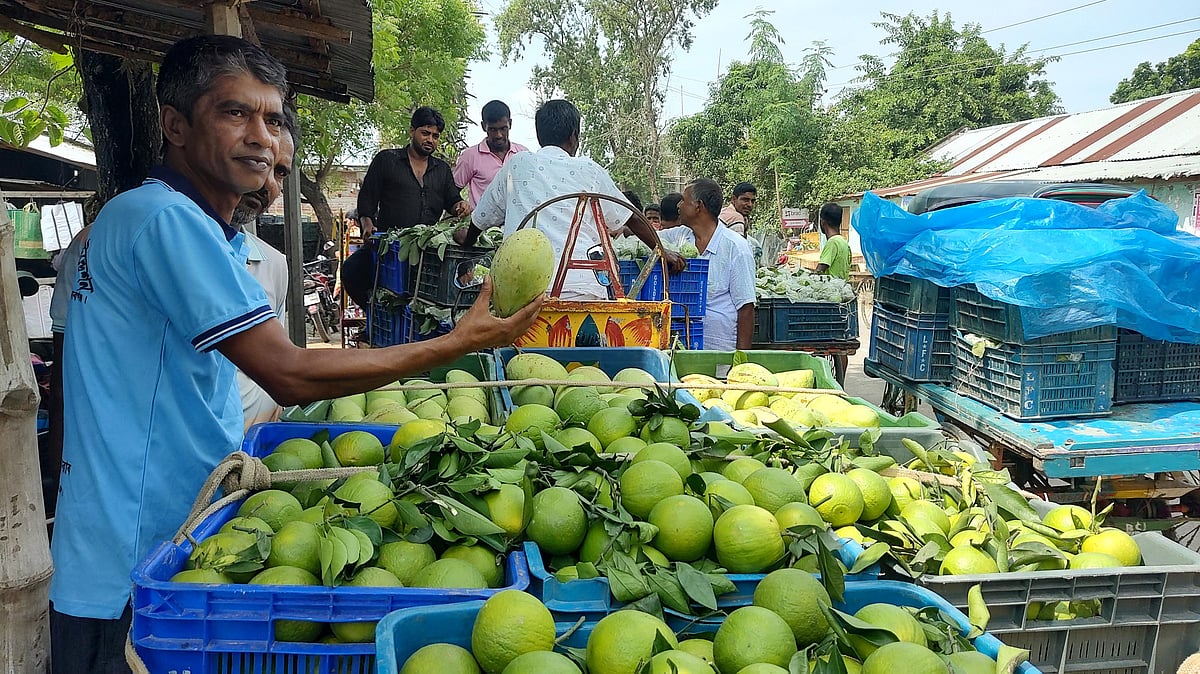 গতকাল দুপুর ১২টার দিকে বাজারে গিয়ে দেখা যায় কার্টিমন, আশ্বিনা ও বারি-১১ জাতের আম, পেয়ারা, মাল্টা, পেঁপে ও ড্রাগন ফলবোঝাই ভটভটির সারি। চলছে বেচাকেনা। বাজার–সংলগ্ন আড়তগুলোয় দেখা যায় শ্রমিক ও ব্যবসায়ীদের কর্মব্যস্ততা।