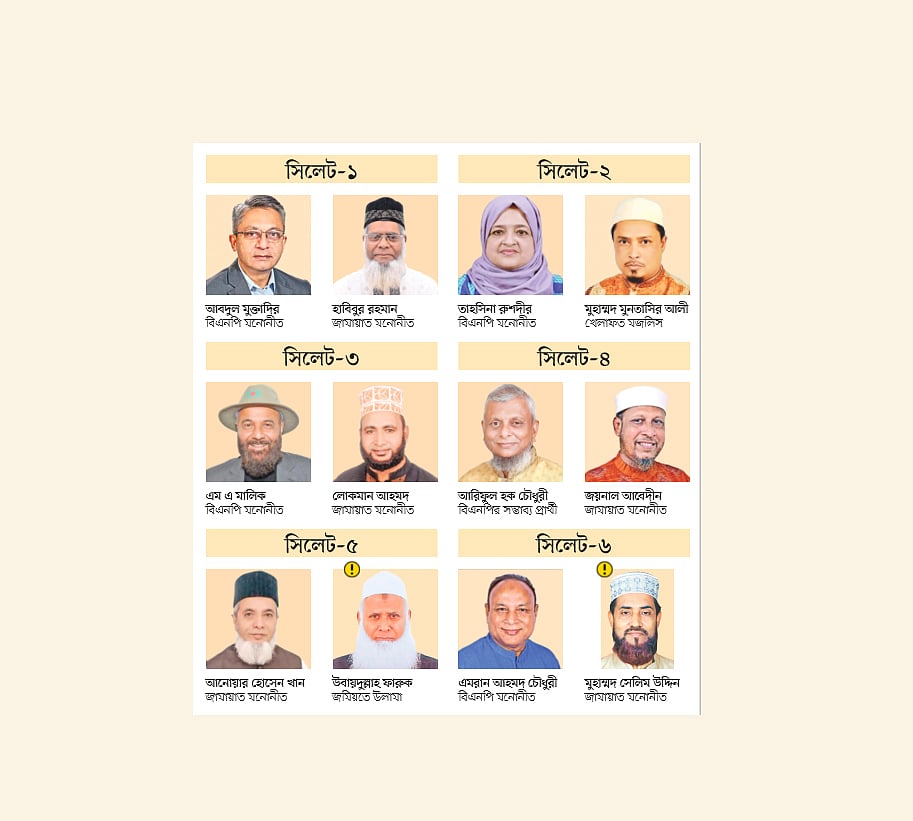 জেলার ছয়টি আসনের মধ্যে চারটিতে প্রার্থী ঘোষণা করেছে বিএনপি। এ নিয়ে রয়েছে ‘অসন্তোষ’। জামায়াত সব আসনে প্রার্থী দিয়ে অনেক আগে থেকেই গণসংযোগ শুরু করেছে। জাতীয় নাগরিক পার্টি (এনসিপি) প্রার্থী ঘোষণা না করলেও সিলেট-১ ও ৩ আসনে দলটির দুই নেতা তৎপর আছেন। এ ছাড়া ইসলামপন্থি বেশ কয়েকটি দলের নেতারা মাঠপর্যায়ে কাজ করছেন। বামপন্থী দলগুলোর তেমন তৎপরতা না থাকলেও সিলেট-১ আসনে নির্বাচনের প্রস্তুতি নিয়ে এগোচ্ছে বাংলাদেশের সমাজতান্ত্রিক দল (বাসদ)।