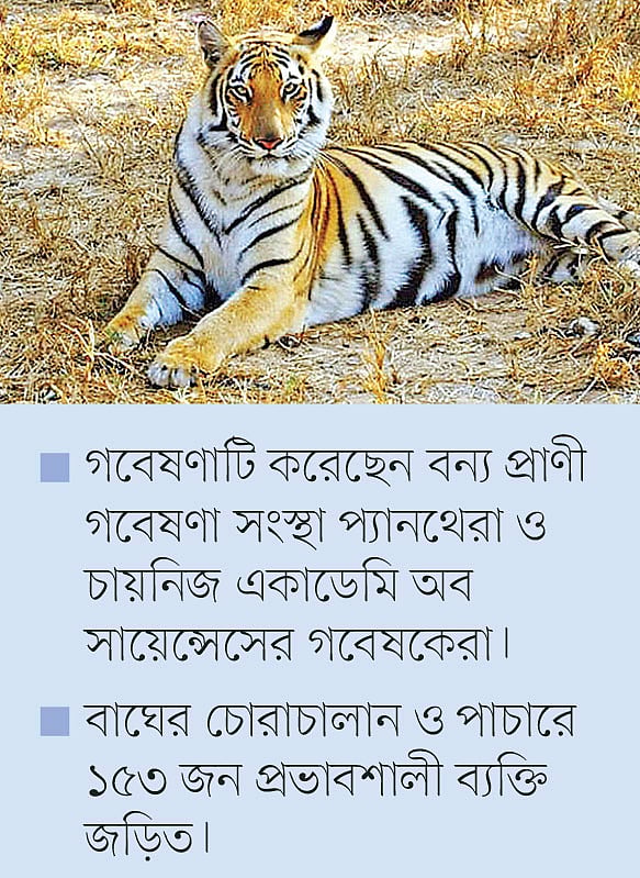 বাঘের চোরাচালান ও পাচারে ১৫৩ জন প্রভাবশালী ব্যক্তি জড়িত। বাঘের অঙ্গপ্রত্যঙ্গ পাচারের ওই চক্রের নেতৃত্ব দিচ্ছেন ভারত, চীন ও মালয়েশিয়ার একদল চোরাচালানকারী। আর এগুলোর সবচেয়ে বড় ক্রেতা কাতার, যুক্তরাজ্য, জার্মানি, অস্ট্রেলিয়া ও জাপানের মতো দেশগুলো।