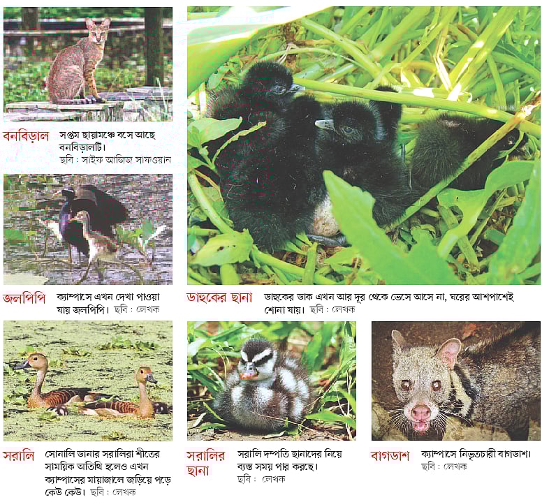 মানুষের পদভারে ওষ্ঠাগত ক্যাম্পাসে করোনা এই সরালির জীবনেও নিয়ে এসেছে সুসময়। নির্জন প্রকৃতিতে এবার ডজনখানেক সরালি দম্পতি ঘর বেঁধেছে এই ক্যাম্পাসে। কয়েকটি সরালি দম্পতির কোলজুড়ে ইতিমধ্যে ছানাও এসেছে।