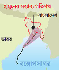 গতিমুখ অনুযায়ী হামুন চট্টগ্রাম ও পটুয়াখালীর খেপুপাড়ার মাঝখান দিয়ে উপকূলে আঘাত হানতে পারে। তবে এটি শেষ পর্যন্ত আঘাত হানবে কি না, তা নিশ্চিত করেননি ভারতের আবহাওয়াবিদেরা।