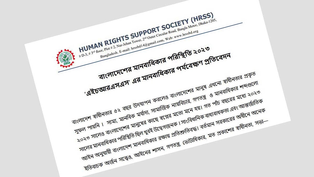 হিউম্যান রাইটস সাপোর্ট সোসাইটির (এইচআরএসএস) ‘মানবাধিকার পরিস্থিতি-২০২৩’ পর্যবেক্ষণ প্রতিবেদনে এ তথ্য উঠে এসেছে। আজ রোববার এইচআরএসএস সংবাদ বিজ্ঞপ্তি দিয়ে এ তথ্য জানিয়েছে।