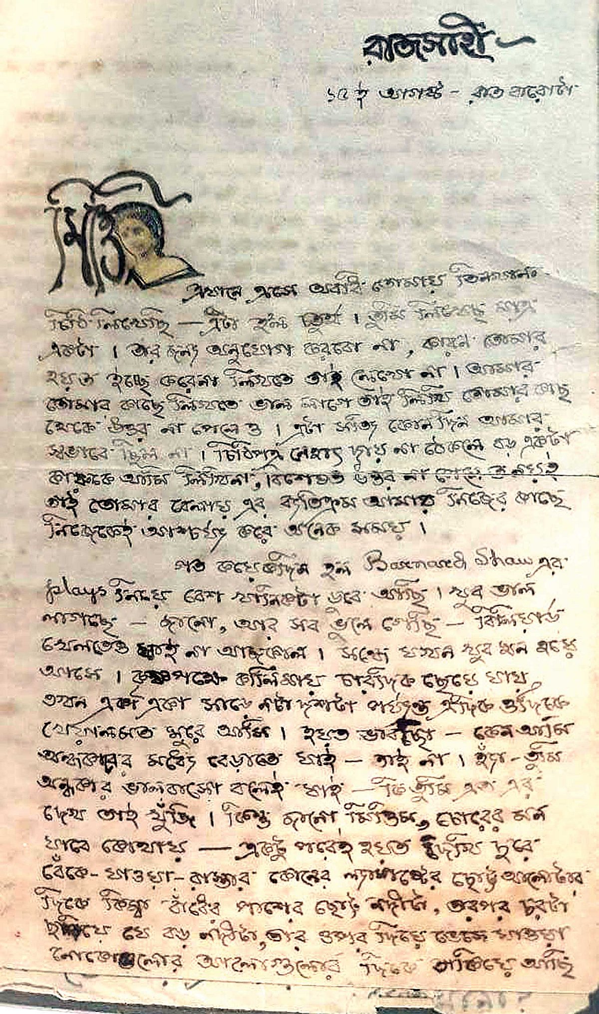 ১৯৪৭ সালের ১৫ আগস্ট রাত ১২টায় রাজশাহীতে বসে এক তরুণ লিখেছেন কলকাতার এক তরুণীকে। চিঠিতে দুজনের কারোরই নাম নেই। সম্বোধনের জায়গায় মেয়েটার ছবি। একইভাবে ছয় পাতার চিঠির শেষে নাম না লিখে ‘ইতি’র পরে ছেলেটা নিজের ছবি দিয়েছেন।