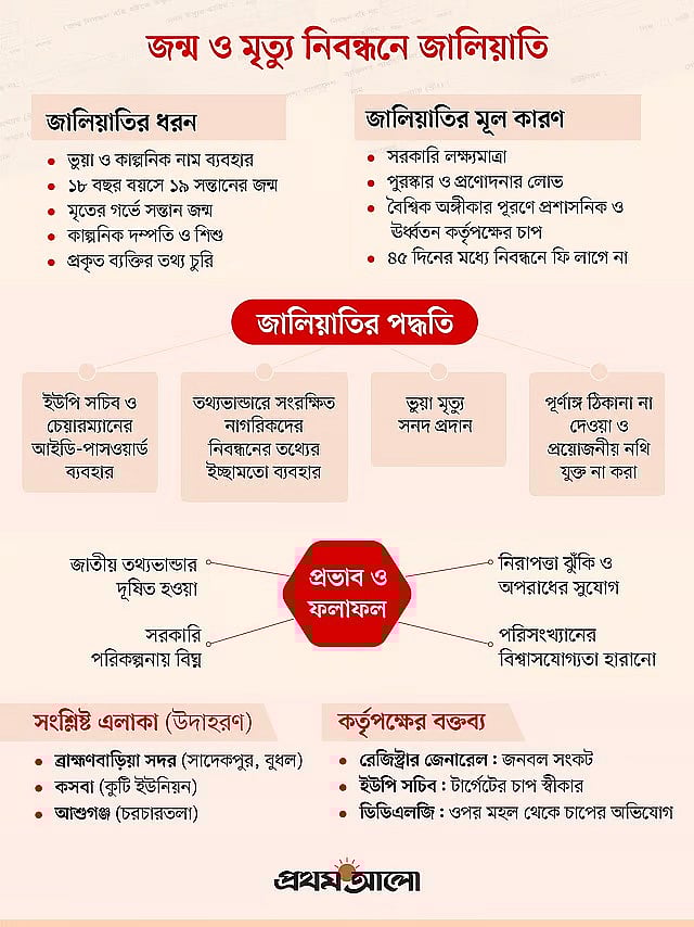 গত ২৬ ডিসেম্বর প্রথম আলোতে ‘প্রথম আলোর অনুসন্ধান, শিশুর ভুয়া জন্ম-মৃত্যু দেখিয়ে নিবন্ধনের লক্ষ্যপূরণ’ শিরোনামে একটি প্রতিবেদন প্রকাশিত হয়। অনুসন্ধানে দেখানো হয়েছে, ইউনিয়ন পরিষদের কার্যালয়ে সংরক্ষিত জন্ম ও মৃত্যুনিবন্ধনের ডেটাবেজে থাকা প্রকৃত ব্যক্তিদের তথ্য ব্যবহার করে একাধিক ভুয়া নিবন্ধন তৈরি করা হয়েছে।