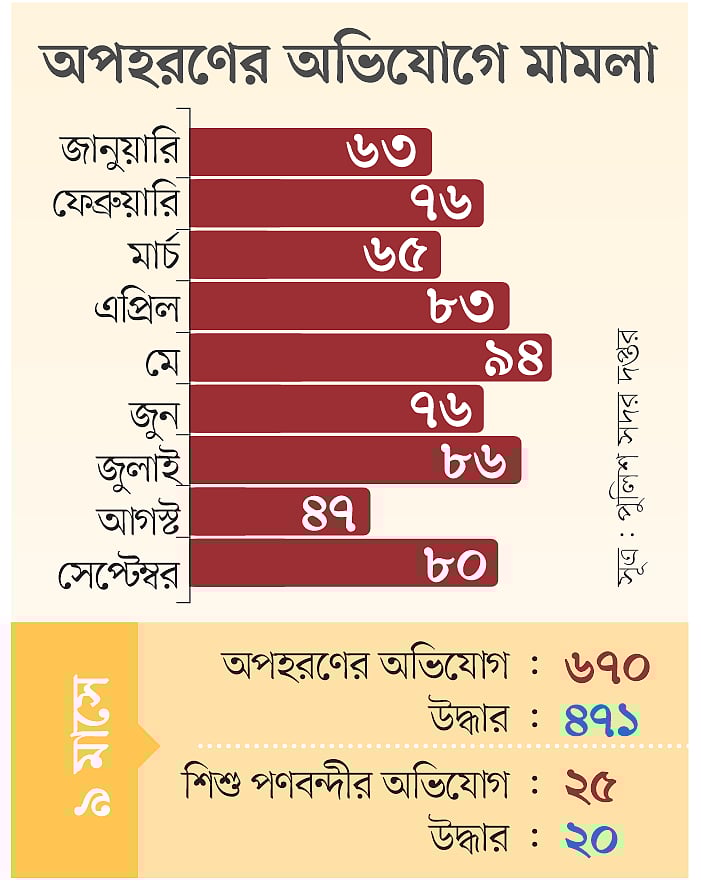 শিশু অপহরণ ও জিম্মি মামলায় ৯ মাসে উদ্ধার হয়েছে ৪৯১ শিশু, অর্থাৎ ২৯ শতাংশ শিশু উদ্ধার হয়নি।