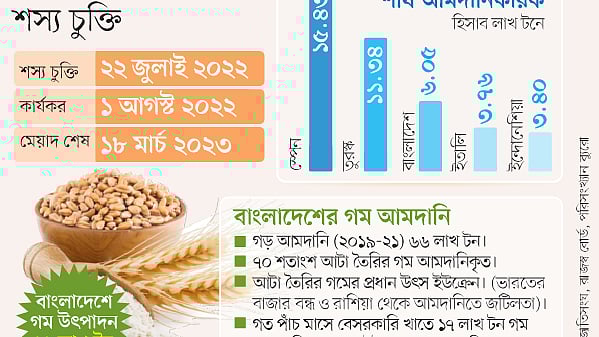 ইউক্রেন থেকে গম আমদানিকারক প্রতিষ্ঠান বিএসএম গ্রুপের চেয়ারম্যান আবুল বশর চৌধুরী প্রথম আলোকে বলেন, রাশিয়া চুক্তিতে না থাকলে ইউক্রেন থেকে আমদানির সুযোগ বন্ধ হয়ে যাবে। সে ক্ষেত্রে রাশিয়া থেকে গম আমদানি বাড়াতে হবে। তবে রাশিয়া থেকে আমদানিতে সব ব্যাংক ঋণপত্র খুলছে না।