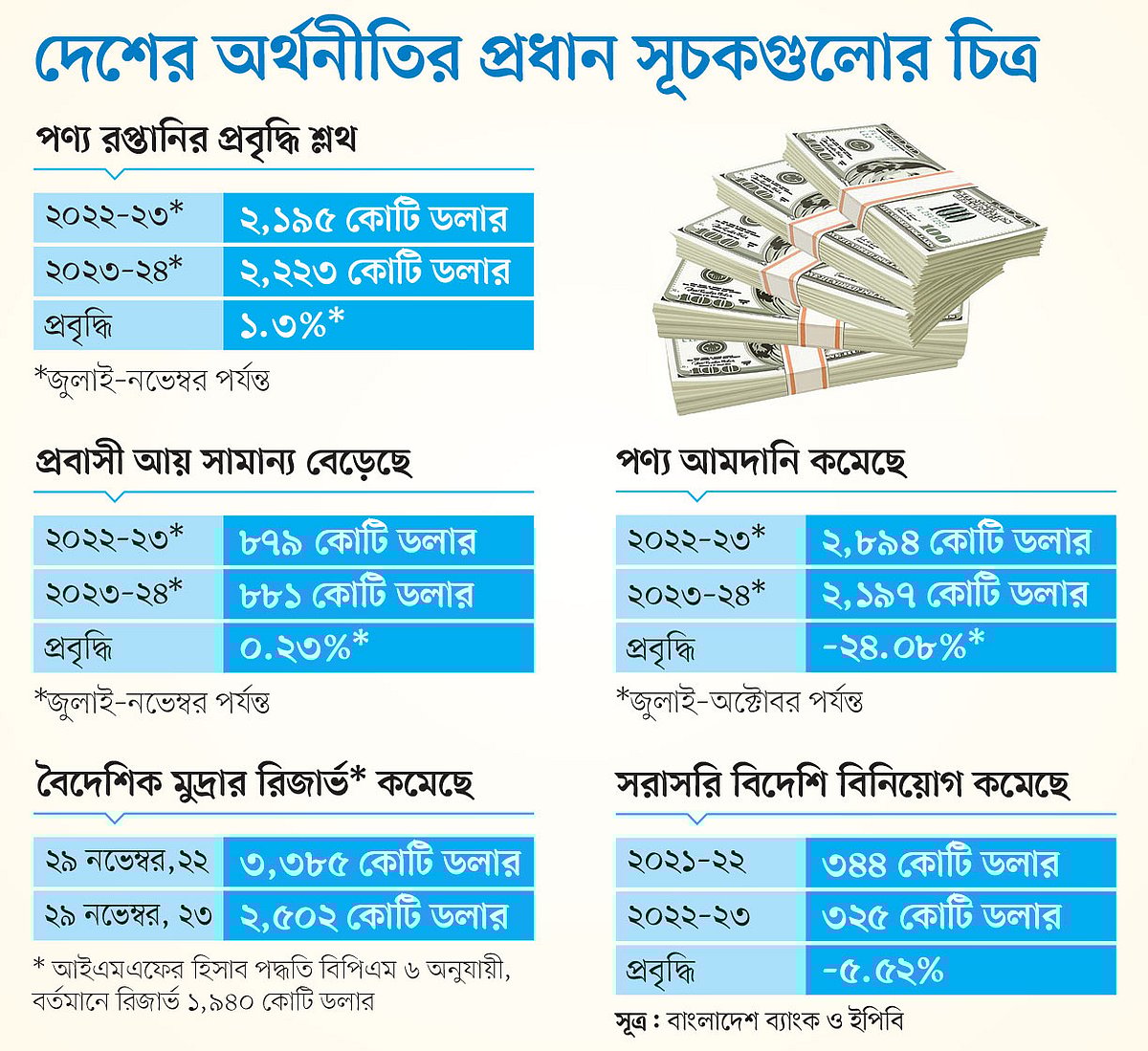 গভর্নর এ জন্য চারটি কারণের ওপর দায় চাপিয়েছেন। এক. যুক্তরাষ্ট্রের ক্রমবর্ধমান নীতি সুদহার; দুই. আসন্ন নির্বাচন ও বিদেশি বিনিয়োগের দ্বিধা; তিন. ট্রেড ক্রেডিটের প্রতিকূলতা এবং চার. বিদেশি সহায়তার অর্থছাড়ে কষানি। কারণ, বহুবিধ হলে তা অজুহাতে পরিণত হয়। ইংরেজিতে একটি প্রবচন আছে এমন—‘বিষয়টি যদি হয় গুরুত্বপূর্ণ তাহলে তুমি এর সুরাহা বের করবে। যদি তা না হয়, তাহলে তুমি বের করবে অজুহাত।’