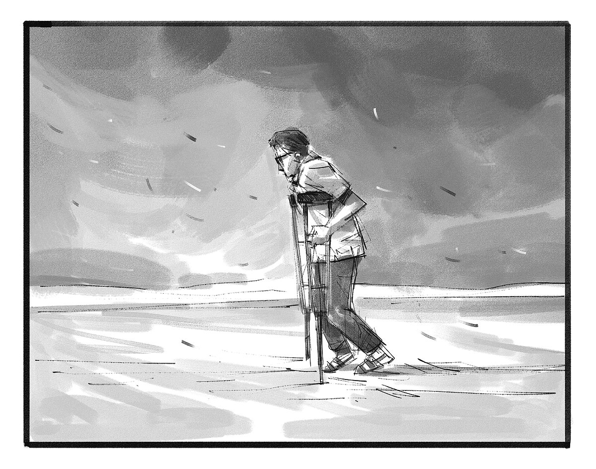 ক্রাচে ভর দিয়ে হাঁটা শুরু করি। প্রতিটি পা ফেলতে ফেলতে মনে হচ্ছে, কোনো প্রাচীর ভেদ করছি। মানুষজন সরে দাঁড়াচ্ছে। কেউ কেউ তাকাচ্ছে বিস্ময়ে। তাদের চোখে আমি কি মানুষ, নাকি যন্ত্র, জানি না। তবে জানি, আমি পথে আছি, লড়াইয়ে আছি। এখানে থামা মানেই পরাজয়।