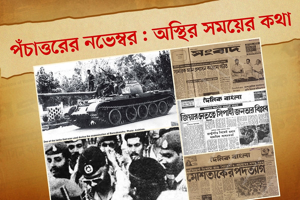 দেশের রাজনৈতিক ইতিহাসে ১৯৭৫ সাল হচ্ছে সবচেয়ে ঝঞ্ঝাপূর্ণ বছরের একটি। এর মধ্যে বাংলাদেশের ইতিহাসের অন্যতম বাঁকবদলের মাস ছিল পঁচাত্তরের নভেম্বর। এই অস্থির সময়, বিশেষ করে ৩ থেকে ৭ নভেম্বরের ঘটনাবলি নিয়ে যত লেখালেখি হয়েছে, অন্য কোনো সময় নিয়ে তত হয়নি। ৩ নভেম্বরের অভ্যুত্থানের বিপরীতে ৭ নভেম্বর অনুষ্ঠিত হয়েছিল পাল্টা আরেকটি অভ্যুত্থান। এ সময়ের নানা স্মৃতি, দলিল ও মতামত নিয়ে থাকছে প্রথম আলোর এই বিশেষ আয়োজন।