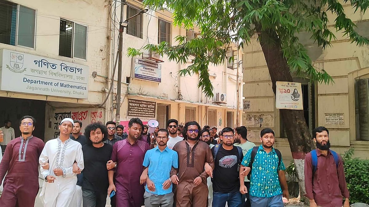 বিভিন্ন আন্দোলনে জগন্নাথ বিশ্ববিদ্যালয় বরাবরই সাহসী ভূমিকা রেখেছে উল্লেখ করে নাট্যকলা বিভাগের শিক্ষার্থী কিশোর সাম্য বলেন, ‘গুলির মুখেও আমরা পিছু হটিনি। অথচ ৫ আগস্টের পর দেখা গেছে, বাজেট বরাদ্দ পেয়েছে ঢাবি, চবি ও অন্যান্য নামী বিশ্ববিদ্যালয়।’