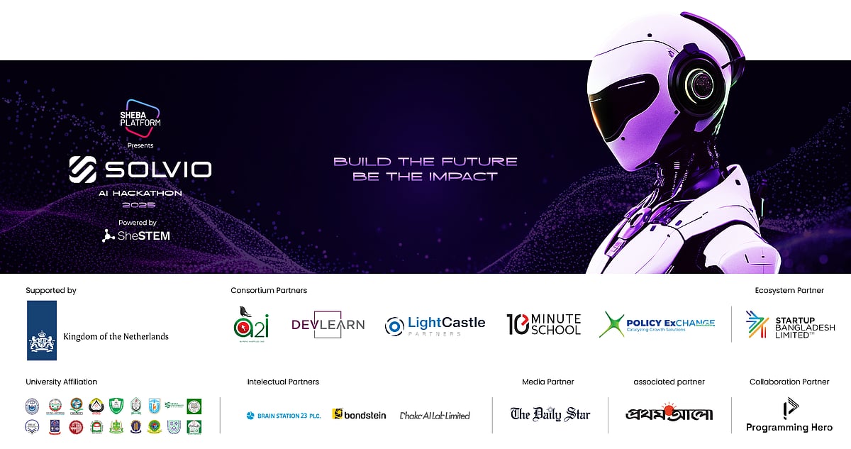 এআই এখনকার সময়ে প্রযুক্তিবিশ্বে এটি একটি পরিচিত শব্দ। তবে সলভিও এআই হ্যাকাথন ২০২৫ শুধু একটি হ্যাকাথন নয়; বরং এটি বাংলাদেশের প্রযুক্তির বড় ধরনের বিপ্লবের সূচনা করতে যাচ্ছে। এই ইভেন্ট আয়োজন করছে সেবা প্ল্যাটফর্ম লিমিটেড, সিস্টেমের (নেদারল্যান্ডস দূতাবাসের উদ্যোগ) সঙ্গে পার্টনারশিপে। এখানে অংশগ্রহণকারীরা তাঁদের দক্ষতা প্রদর্শন করবেন এবং এআইয়ের সাহায্যে তৈরি করবে সমাধান; যা প্রযুক্তির উন্নয়ন এবং সমাজের জন্য এক নতুন দিগন্ত খুলে দিতে পারে।