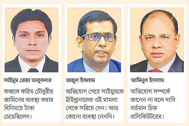 আওয়ামী লীগের কারাবন্দী একজন সাবেক রাজনীতিককে জামিনে মুক্তি পাইয়ে দেওয়ার জন্য তাঁর পরিবারের কাছে ১ কোটি টাকা চেয়েছিলেন আন্তর্জাতিক অপরাধ ট্রাইব্যুনালের (আইসিটি) একজন প্রসিকিউটর (রাষ্ট্রপক্ষের আইনজীবী)। হোয়াটসঅ্যাপ কথোপকথনের একাধিক অডিও রেকর্ডিংয়ে এমন তথ্য পাওয়া গেছে। রেকর্ডিংগুলো সংগ্রহ করেছে প্রথম আলো ও নেত্র নিউজ।