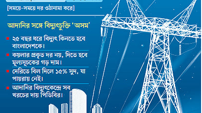আদানি ও পায়রা কয়লাভিত্তিক বিদ্যুৎকেন্দ্রের সঙ্গে পিডিবির করা বিদ্যুৎ ক্রয়ের চুক্তি বাংলাদেশ প্রকৌশল বিশ্ববিদ্যালয়ের (বুয়েট) একজন বিশেষজ্ঞের সঙ্গে মিলে পর্যালোচনা করে দেখেছে প্রথম আলো। এতে দেখা যায়, দেরিতে বিল পরিশোধের জন্য বছরে ১৫ শতাংশের চড়া সুদ ধরা আছে আদানির চুক্তিতে, যা পায়রায় নেই।