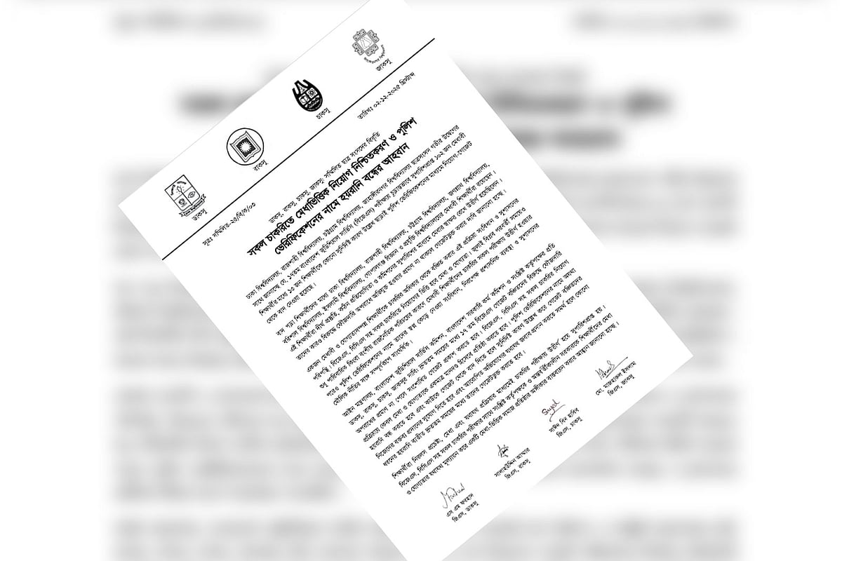 সব চাকরিতে মেধাভিত্তিক নিয়োগ নিশ্চিতকরণ এবং পুলিশ ভেরিফিকেশনের নামে হয়রানি বন্ধের আহ্বান জানিয়ে যৌথ বিবৃতি দিয়েছে ডাকসু, রাকসু, চাকসু, জাকসু। বিবৃতিতে বলা হয়, একজন মেধাবী ও যোগ্যতাসম্পন্ন শিক্ষার্থীকে চাকরির অধিকার থেকে বঞ্চিত করার এই প্রক্রিয়া সংবিধান ও সুশাসনের পরিপন্থী।