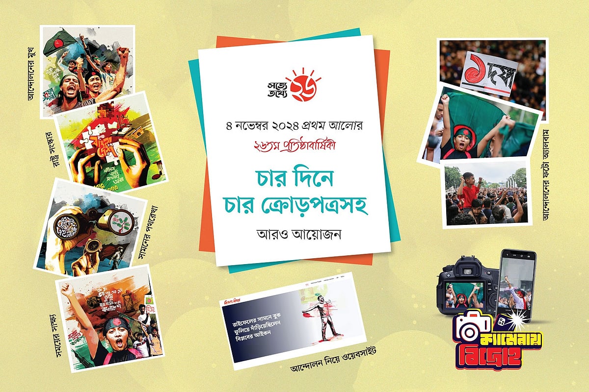 সত্যের পক্ষে থেকে বিচিত্র অভিজ্ঞতা ও নিজস্ব স্বকীয়তা নিয়ে প্রথম আলো ২৫ পেরিয়ে ২৬ বছরে পা ফেলছে। ২৬তম প্রতিষ্ঠাবার্ষিকীতে অপূর্ব সেই পথ ধরে প্রথম আলো পৌঁছে যাবে পাঠকদের কাছে।