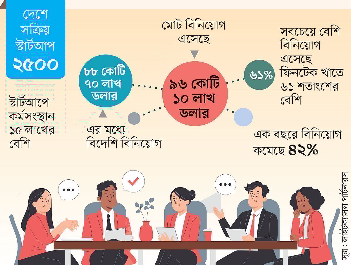 গত এক যুগের বেশি সময়ে দেশের স্টার্টআপ খাত মোট বিনিয়োগ পেয়েছে ৯৬ কোটি ১০ লাখ ডলার। এর মধ্যে ৮৮ কোটি ৭০ লাখ ডলারই বিদেশি বিনিয়োগ। আর মোট বিনিয়োগের ৬৬ শতাংশ হয়েছে গত চার বছরে, অর্থাৎ মহামারি ও তার পরের সময়ে।