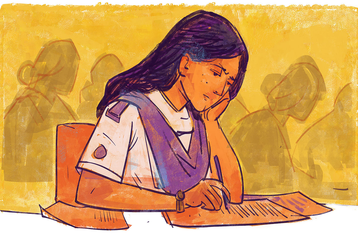 খাতা দেওয়ার পর আরেক সমস্যায় পড়লাম। বাড়ি থেকে বেরোনোর সময় ব্যাগ থেকে পেনসিল, স্কেল বের করে রেখে দিয়েছিলাম, লাগবে না বলে! আশপাশে লক্ষ করলাম সবাই ব্যস্ত। কী আর করা! খাতা ভাঁজ করে, কলম দিয়েই মার্জিন করলাম।