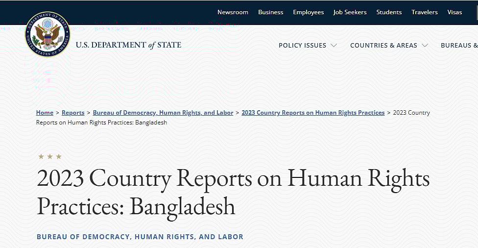 বাংলাদেশে মানবাধিকার পরিস্থিতির উল্লেখযোগ্য কোনো পরিবর্তন হয়নি। ২০২৩ সালের পরিস্থিতি নিয়ে গতকাল সোমবার যুক্তরাষ্ট্রের পররাষ্ট্র দপ্তরের প্রকাশিত এ-সংক্রান্ত বার্ষিক প্রতিবেদনে এমন তথ্যই উল্লেখ করা হয়েছে।