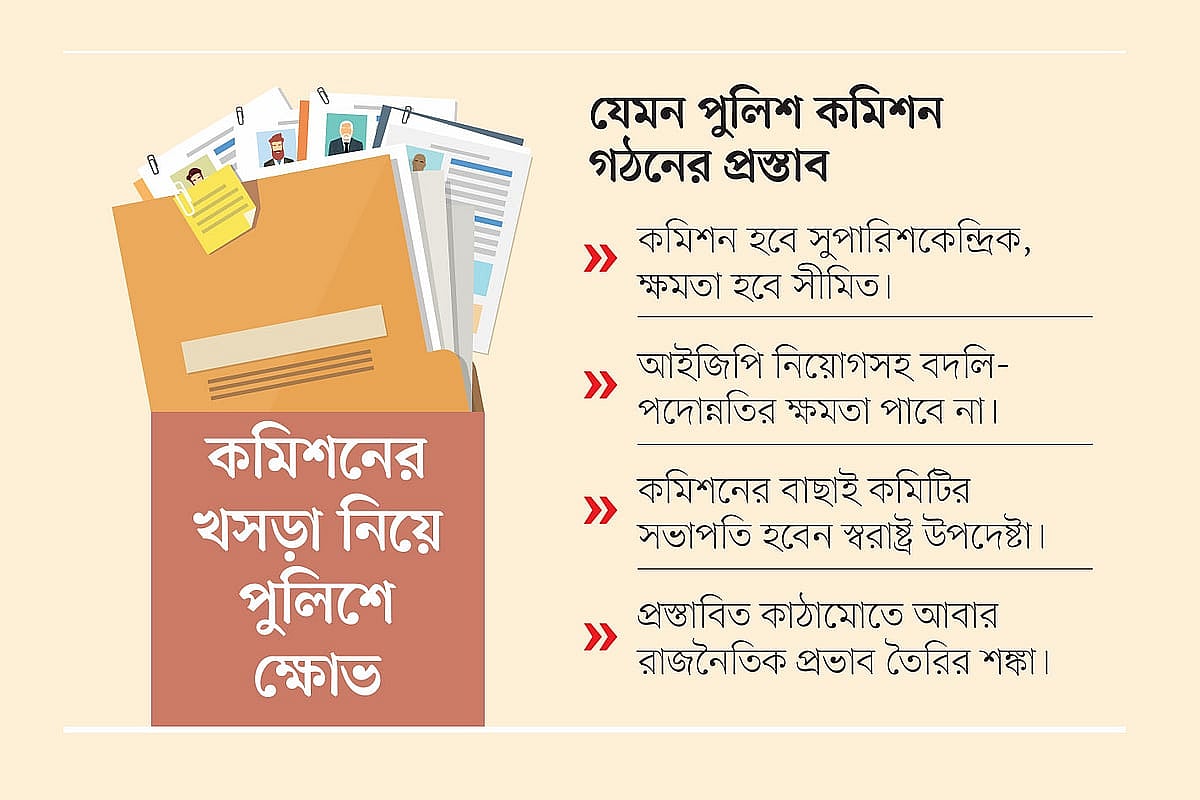 জুলাই গণ-অভ্যুত্থানের পর পুলিশ বাহিনীতে শৃঙ্খলা ফিরিয়ে আনা ও জবাবদিহি প্রতিষ্ঠায় স্বাধীন পুলিশ কমিশন গঠনের জোর দাবি ওঠে। অন্তর্বর্তী সরকার দায়িত্ব নেওয়ার পর আইন উপদেষ্টার নেতৃত্বে গঠিত একটি কমিটি পুলিশ কমিশনের খসড়া তৈরি করে। তবে সেই খসড়া আইন মন্ত্রণালয় থেকে স্বরাষ্ট্র মন্ত্রণালয়ে পাঠানোর পর তা অনেকটাই পাল্টে যায়। বাদ পড়ে অনেক গুরুত্বপূর্ণ সুপারিশ।