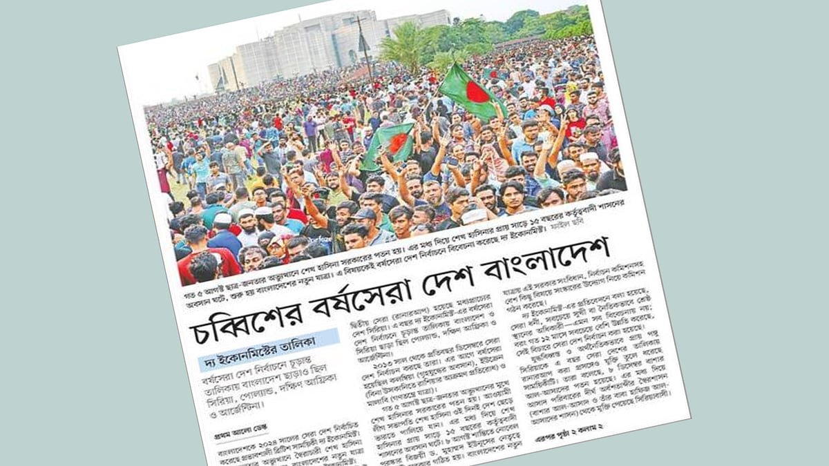 বছরের শেষ মাসে প্রভাবশালী ব্রিটিশ সাময়িকী দ্য ইকোনমিস্ট জানিয়েছে, তাদের চোখে ২০২৪ সালের সেরা দেশ বাংলাদেশ।