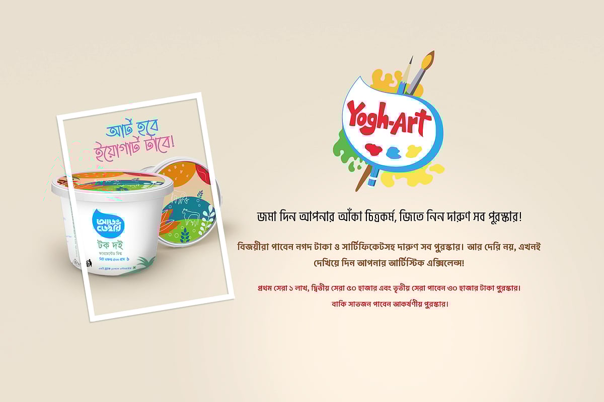 প্রথমবারের সাফল্যের ধারাবাহিকতায় আবার শুরু হচ্ছে ‘আড়ং ডেইরি ইয়োগ-আর্ট ২.০’ প্রতিযোগিতা। এর মাধ্যমে সারা দেশের আনাচকানাচে ছড়িয়ে থাকা চিত্রশিল্পীদের সুপ্ত প্রতিভা তুলে ধরা হবে। দেশের শীর্ষস্থানীয় ব্র্যান্ড ‘আড়ং ডেইরি’র উদ্যোগে আয়োজনটির সহযোগিতায় রয়েছে প্রথম আলো ডটকম।
