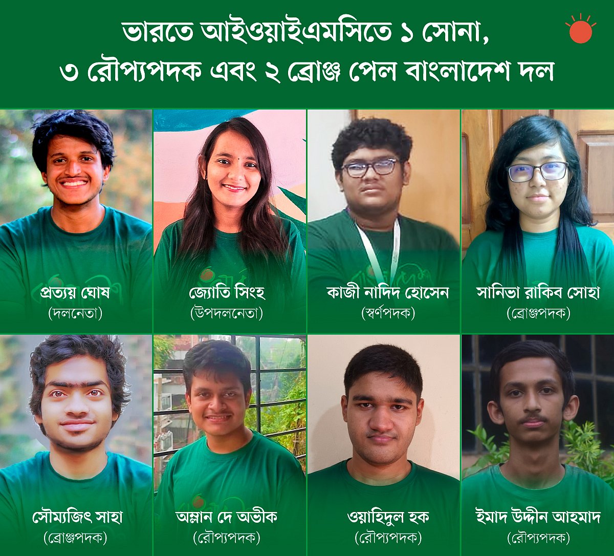 বাংলাদেশ গণিত অলিম্পিয়াডের প্রেস বিজ্ঞপ্তিতে বলা হয়েছে, দলটিকে পরিচালনা ও সার্বক্ষণিক তদারকের জন্য প্রতিযোগীদের সঙ্গে ছিলেন তাঁদের দলনেতা বাংলাদেশ গণিত অলিম্পিয়াডের একাডেমিক কো-অর্ডিনেটর প্রত্যয় ঘোষ এবং উপদলনেতা বাংলাদেশ গণিত অলিম্পিয়াডের একাডেমিক সদস্য জ্যোতি সিংহ। একক প্রতিযোগিতায় ১টি স্বর্ণপদক, ৩টি রৌপ্যপদক, ২টি ব্রোঞ্জপদক এবং দলগতভাবে ২টি ১ম রানার্সআপের সম্মাননা জিতেছে বাংলাদেশ দল।