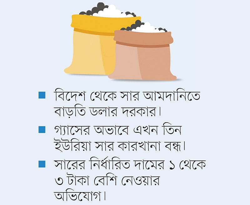 সারকে একটি সংবেদনশীল পণ্য হিসেবে গণ্য করে সরকার সব সময় যথেষ্ট মজুত নিশ্চিত করেছে। সমস্যা তৈরি হয়েছে দেড় বছর ধরে। বৈদেশিক মুদ্রার মজুত কমে যাওয়ায় সার আমদানিতে সমস্যা তৈরি হয়েছে। আবার মার্কিন ডলারের অভাবে গ্যাস আমদানি ব্যাহত হওয়ায় দেশেও সার কারখানা পুরো সময় চালানো যায়নি।