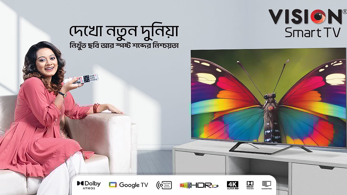 যুগের চাহিদায় বর্তমানে প্রায় সব টিভিতে ব্যবহৃত হচ্ছে অত্যাধুনিক প্রযুক্তি। পিছিয়ে নেই ভিশন ব্র্যান্ডও। দর্শকের সঠিক বিনোদন উপভোগের সুযোগ করে দিতে ভিশন টিভি যুক্ত করেছে অত্যাধুনিক নানান প্রযুক্তি। বড় স্ক্রিনে টিভি দেখার জন্য মডেলভেদে ভিশন নিশ্চিত করে ‘এ প্লাস প্যানেল’, ‘এইচডিআর’, ‘এইচডিআর টেন’ এবং ‘ডলবি ভিশন’। পাশাপাশি রয়েছে ‘গুগল সার্টিফায়েড’ এবং ফার ফিল্ড ভয়েস কন্ট্রোল সিস্টেম–সংবলিত টিভি। আসন্ন বিশ্বকাপ উন্মাদনায় ক্রিকেটপ্রেমীদের খেলা দেখার আনন্দ বাড়িয়ে দিতে ভিশনের তিনটি টিভি থেকে বেছে নিতে পারেন আপনার পছন্দেরটি।