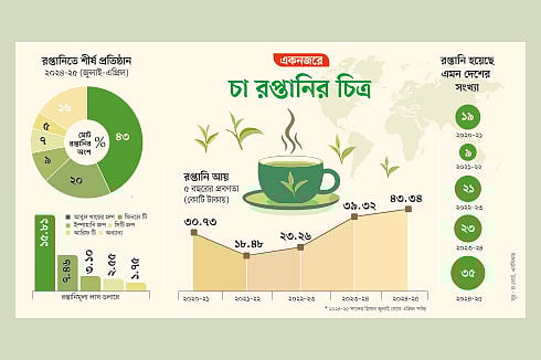 চা উদ্বৃত্তের পরিমাণ বাড়ায় রপ্তানিও বাড়তে থাকে। ২০২৩-২৪ অর্থবছরে ৩৬ লাখ ডলারের চা রপ্তানি হয়। সেখানে চলতি অর্থবছরে ১০ মাসেই রপ্তানি হয় ৩৬ লাখ ৪৪ হাজার ডলার বা ৪৩ কোটি ৩৪ লাখ টাকার চা রপ্তানি হয়।