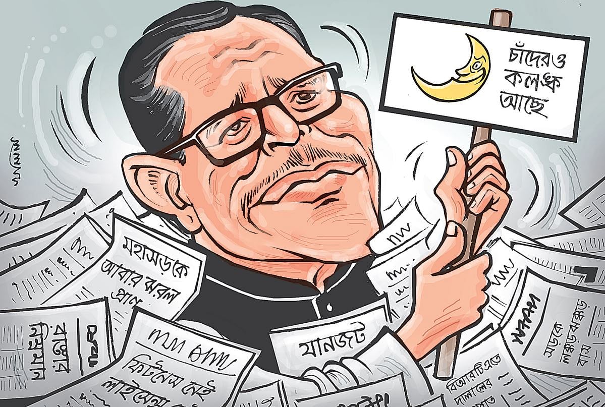 সড়ক পরিবহন মন্ত্রণালয়ের সভাকক্ষে ৮ মার্চ এক সংবাদ সম্মেলনে সড়কমন্ত্রীর কাছে এই প্রতিবেদকের পক্ষ থেকে জানতে চাওয়া হয়, তিনি মন্ত্রণালয়ের দায়িত্ব নিয়ে সড়কে শৃঙ্খলা আনা, দুর্ঘটনা কমানো ও যানজট নিরসনকে অগ্রাধিকার দিয়েছিলেন। সে অবস্থার পরিবর্তন না হওয়ার বিষয়টিকে তিনি কীভাবে দেখেন। জবাবে তিনি বলেন, ‘কর্মে, কর্তব্য পালনে একজন মানুষ কখনোই পারফেক্ট (পরিপূর্ণ) নয়। চাঁদেরও কলঙ্ক আছে, এর জন্য কি চাঁদের উজ্জ্বলতা হারিয়ে গেছে? কাজ করতে গেলে কিছু ব্যর্থতা তো থাকবেই। সফলতার মধ্যে ব্যর্থতা আছে, শতভাগ সফলতা সম্ভব না।’