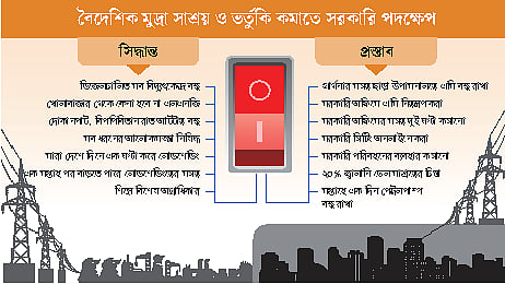 চলমান জ্বালানিসংকট পরিস্থিতি নিয়ে প্রধানমন্ত্রীর কার্যালয়ে অনুষ্ঠিত এক বৈঠকে গতকাল সোমবার এসব সিদ্ধান্ত নেওয়া হয়। বৈঠকে অংশ নেওয়া দুজন দায়িত্বশীল কর্মকর্তা প্রথম আলোকে বলেন, বিশ্ববাজারে এলএনজি ও জ্বালানি তেলের চড়া দামের পরিপ্রেক্ষিতে পরিকল্পিত লোডশেডিং ও জ্বালানি সাশ্রয়ে সমাধান দেখছে সরকার। বৈদেশিক মুদ্রার রিজার্ভের ওপর চাপ কমাতে বিভিন্ন খাতে আমদানি কমানোরও পরামর্শ দিয়েছে বাংলাদেশ ব্যাংক। আর জ্বালানি খাতে ভর্তুকি লাগাম টানার কথা বলেছে অর্থ বিভাগ।